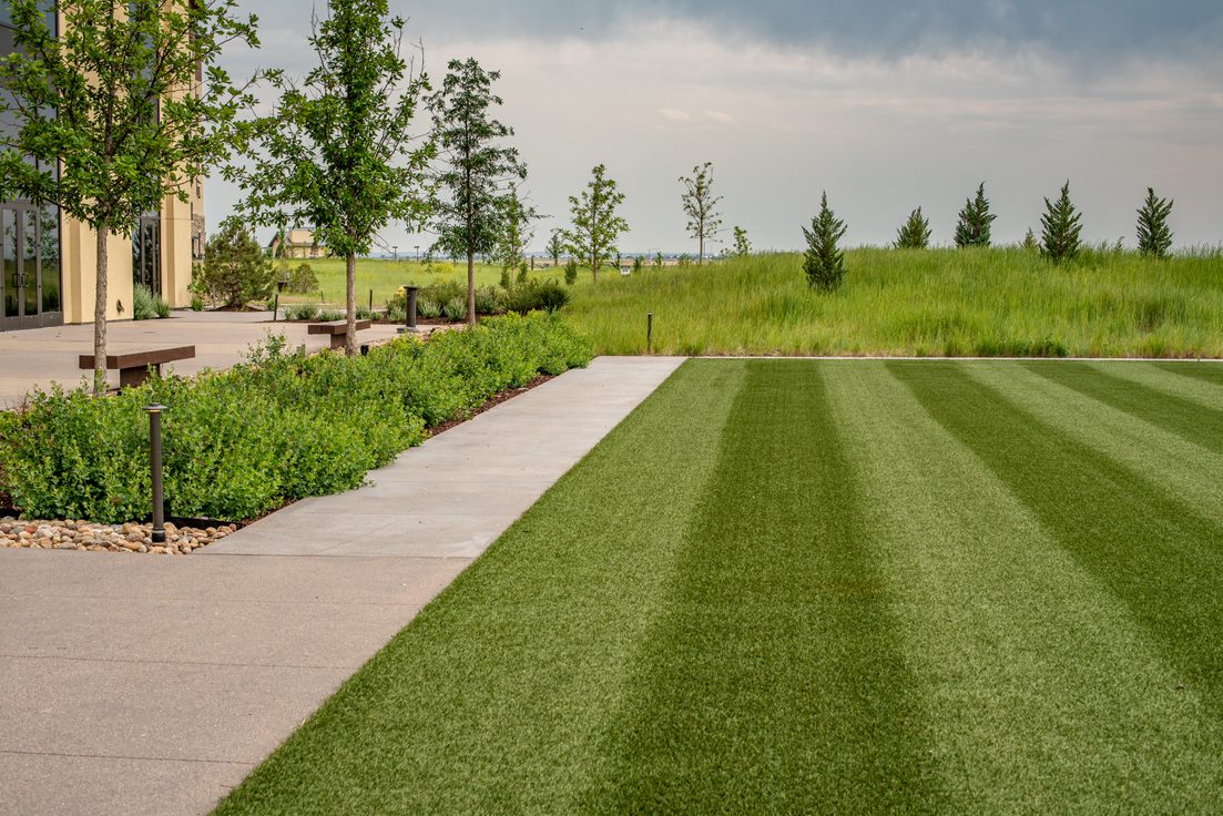Not only does native grass produce oxygen, but by absorbing carbon dioxide, grass also helps to reduce greenhouse emissions, shrinking your business' carbon footprint in the process. Once pollutants have been absorbed by the grass, they travel down to the roots where microbes in the soil break them down. An estimated 5% of all the carbon dioxide in the atmosphere is captured by lawns in the United States alone.
